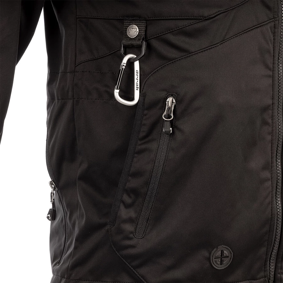 Az Akka kabát funkcionalitása kiemelkedő a hét gondosan elhelyezett zsebével: hat elöl, ebből négy cipzárral rendelkezik és egy nagy hátsó zseb dupla cipzárral az extra biztonság és hozzáférhetőség érdekében. A derékrész állítható, így rugalmas illeszkedést biztosít. A kabát magas gallérral és állítható kapucnival rendelkezik, amely védelmet nyújt a zord időjárás ellen és praktikus karabinerrel van felszerelve, amellyel könnyen rögzíthető például egy póráz vagy egy kulacs. A csuklónál lévő állítható mandzsetták és a hüvelykujj lyuk gondoskodnak arról, hogy az ujjak a helyükön maradjanak még mozgás közben is.