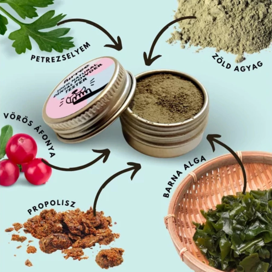 Milyen összetevőket tartalmaz ez a forradalmian új, 100%-ban természetes fogmosó por?