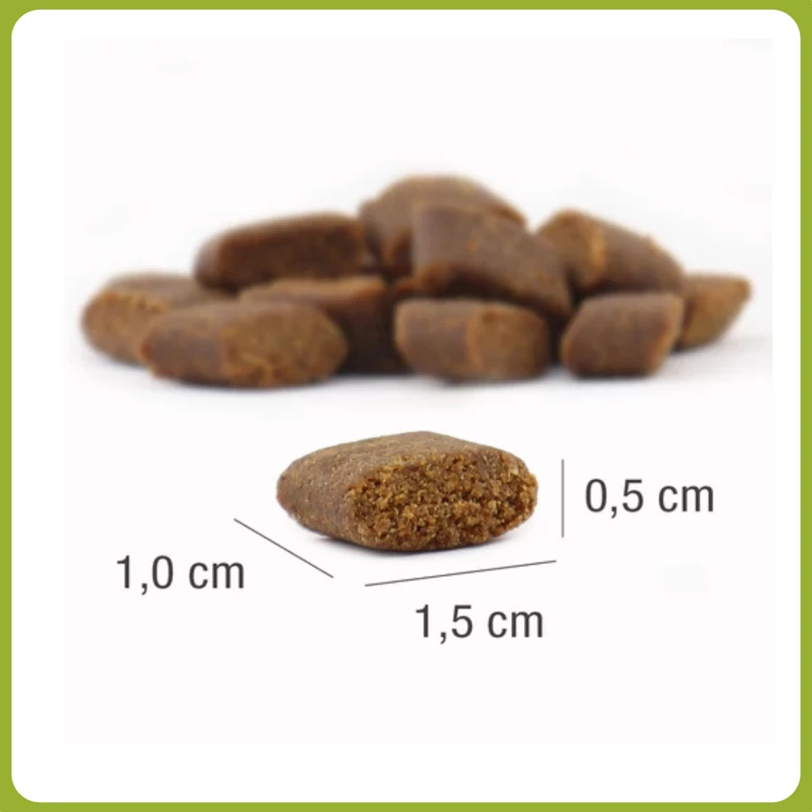A száraz kutyatápot meg lehet nedvesíteni vízzel, vagy adható szárazon is. Ne áztassa be, azonnal kerüljön fogyasztásra. A gyártási eljárás és az összetevők miatt a táp nem duzzad meg, mivel nem vesz fel nedvességet. A táp a gyomorban sem duzzad meg, nem okoz puffadást és nem erjed. Kérjük, hogy mindig tartson készenlétben kutyája számára friss vizet.