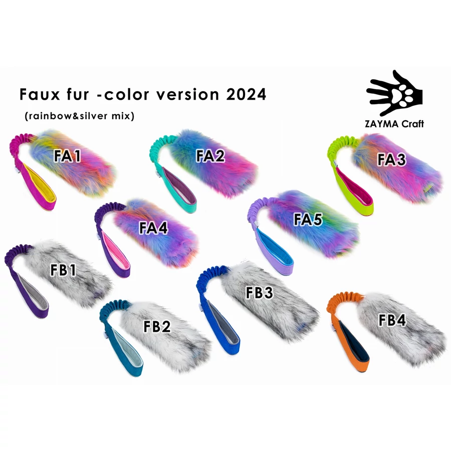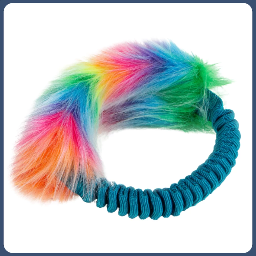 Játék anyaga: Szintetikus szőrme, 2,5 cm széles csőheveder belül rugós gumival.